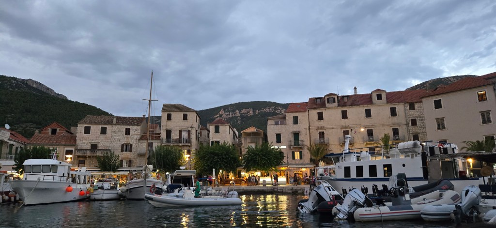 We started the day sailing to Stari Grad, still on the island of Hvar, a charming, beautifully preserved little town. We docked for a couple of hours to stretch our legs, pick up a few groceries, enjoy some ice cream and espresso, and then set off again toward Brač, where we anchored for the night near Milna.